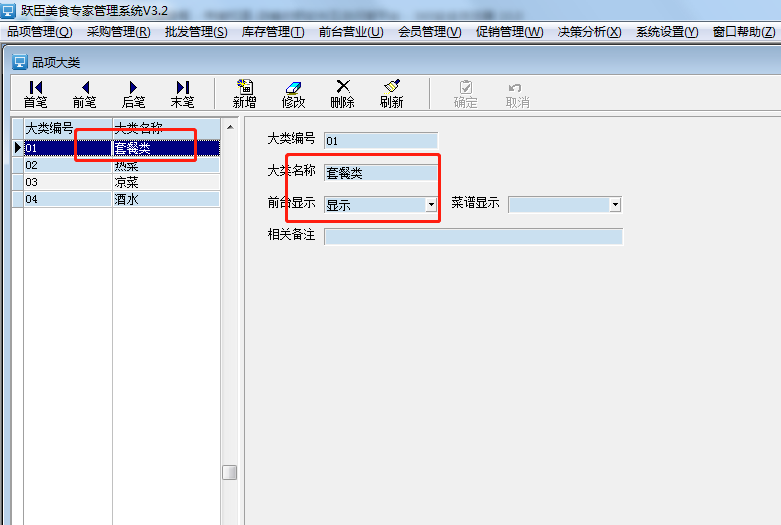 1.点击品项管理,点击品项大类,点击新增按钮,填写大类编号,名称等相关信息,点击确定按钮,点击关闭按钮。