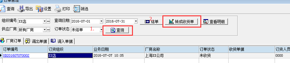 **步先点查询,然后在选择转成收货单