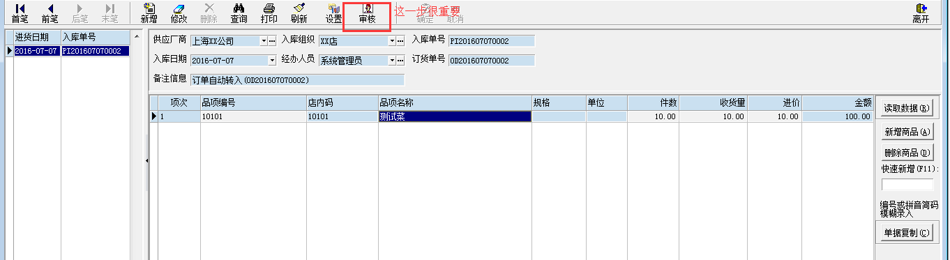 然后新增商品输入产品数量,单价。然后*重要一步(必须审核