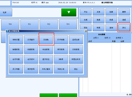 反结账主要是在前台营业中表现。进入前台营业,右上角有“其他”一项,点击并进入,出现反结账按钮。