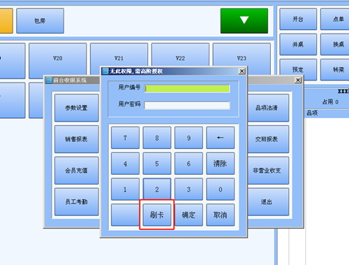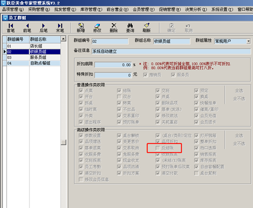 收银员组打勾后 就必须要店长刷卡授权才能使用 反结账