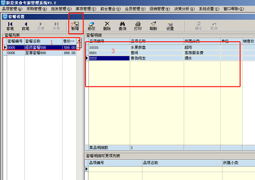*后到“套餐设置”,选中套餐的名称,点击新增,将套餐明晰化(下图)