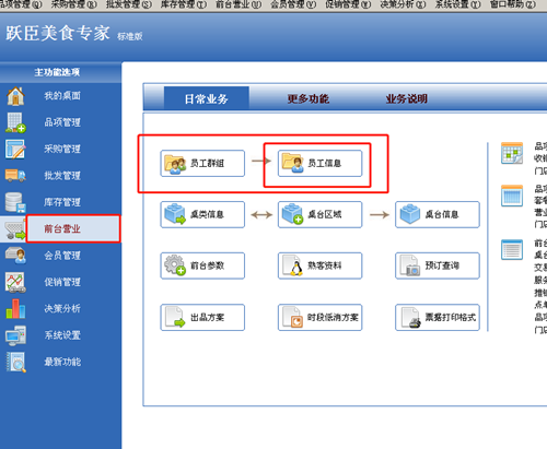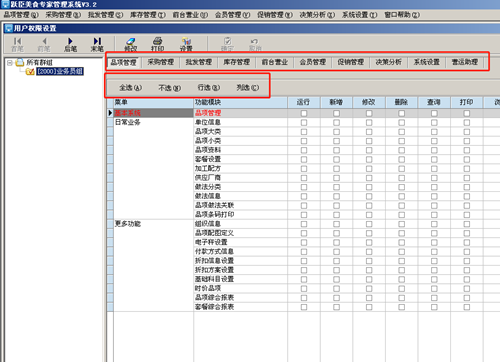 下图显示的是收银员的后台操作权限(一般开启会员管理功能即可 其余功能不要给)