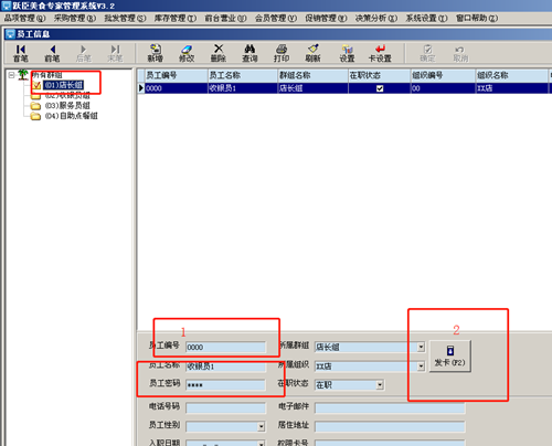 需要制作管理卡,就需要选中店长组,点击“发卡”选项,