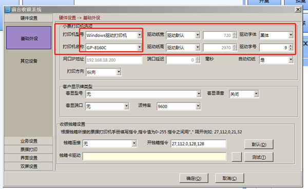 一共两个地方需要注意,都要选择对应的小票机种类