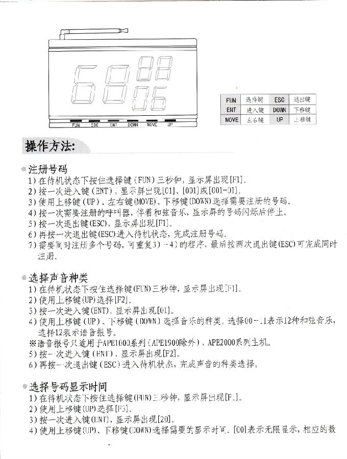 再按ENT 出现001  然后按MOVE 变成**个0闪   按UP键down键调节好需要的号码