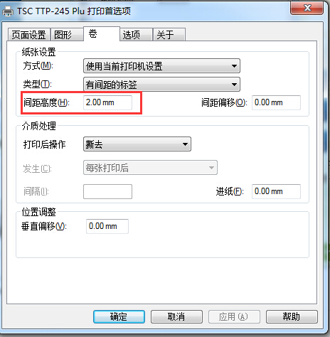 打印机**项设置: